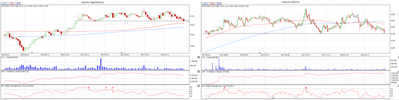 W tym przypadku ciężko wyznaczyć sztywny LimAkt, dlatego uważam, że lepszym rozwiązaniem będzie kupienie akcji jak najbliżej wsparcia (42 zł) a SL ustawić wtedy w okolicach 41,80 zł.