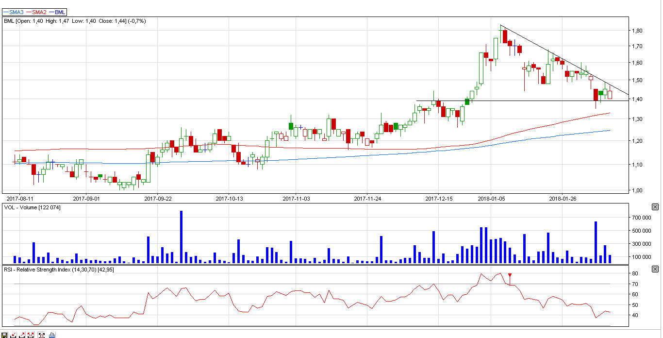 BML to spółka “z przeszłością” – kiedyś mocno oblepiona spekułą, dziś wykres wygląda już zdrowiej ale nadal zaliczana do grupy spekulacyjnych, stąd “odpalenie” nie znaczy tutaj wskok w inwestycję tylko w zagrywkę, to nalezy mieć na uwadze