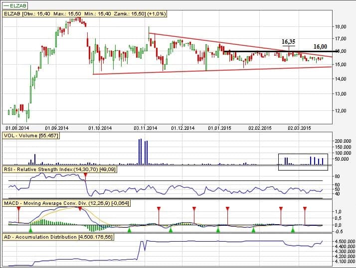 powiem Wam, że skorzystałem z analizy Michała i sam kupiłem trochę akcji Elz – już wczoraj, ustawiając oczywiście wąskiego SLa w razie gdyby kurs mimo woli chciał iść w dół :) Wolumen potwierdza wybicie.