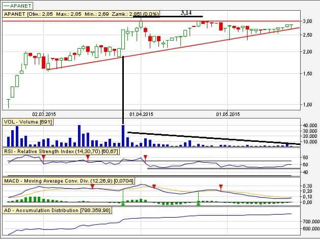 Apanet mimo lekkiego cofnięcia przy minimalnym wolumenie dalej wygląda pozytywnie.