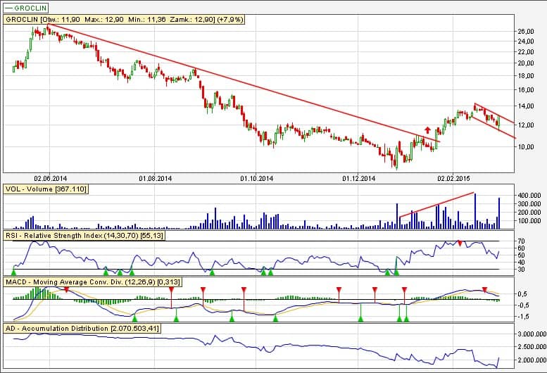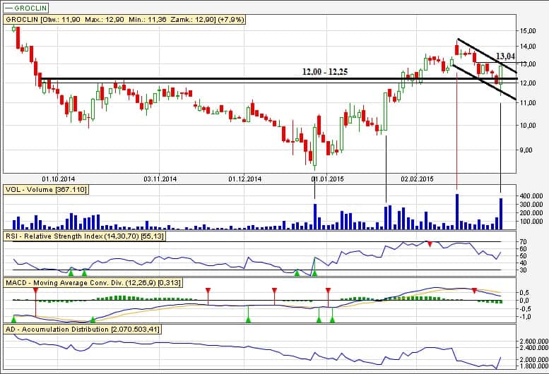 Groclin jak na razie wybronil wsparcie 12,20 – 12,50.