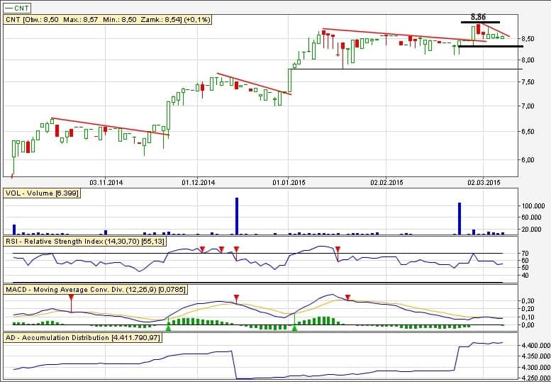 A ja od kilku dni przyglądam się CNT, kurs zbliża się do linii wsparcia trendu wzrostowego http://postimg.org/image/hjpan9qhz/ Nie jestem jednak pewien jak wyrysować sobie linie określające potencjalne dobre miejsce dla LimAkt