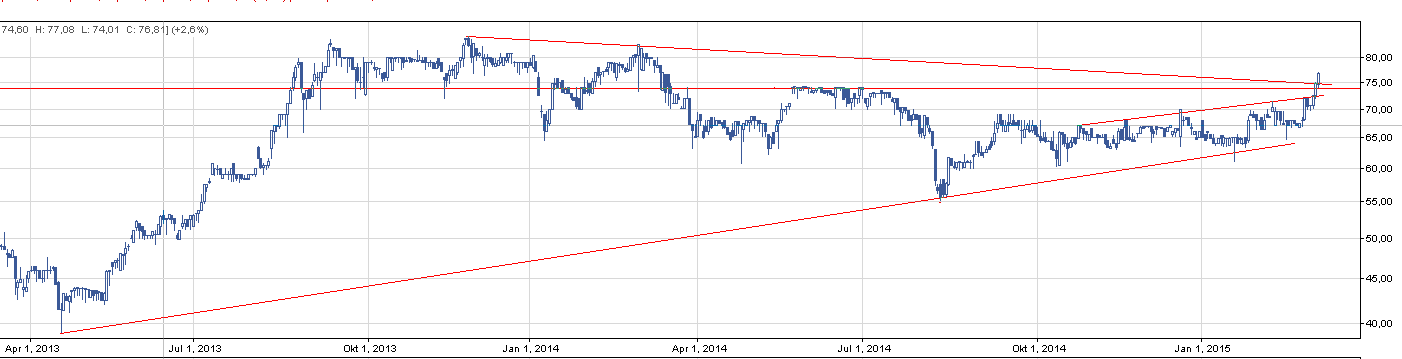 Aktualnie bym pewnie na mniejszą korektę poczekał. Rejony 76-73 zł.
