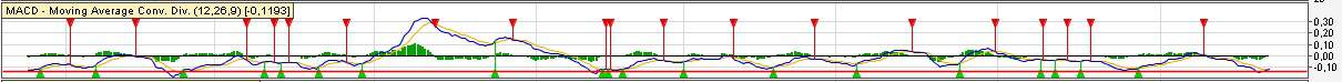 Przy okazji możecie zobaczyć tradycyjny wolumen podczas dystrybucji (potwierdzenie trendu spadkowego). Aktualnie mamy dość dobre miejsce na zagranie pod odreagowanie spadków. Potwierdza to wskaźnik MACD (analiza historyczna):