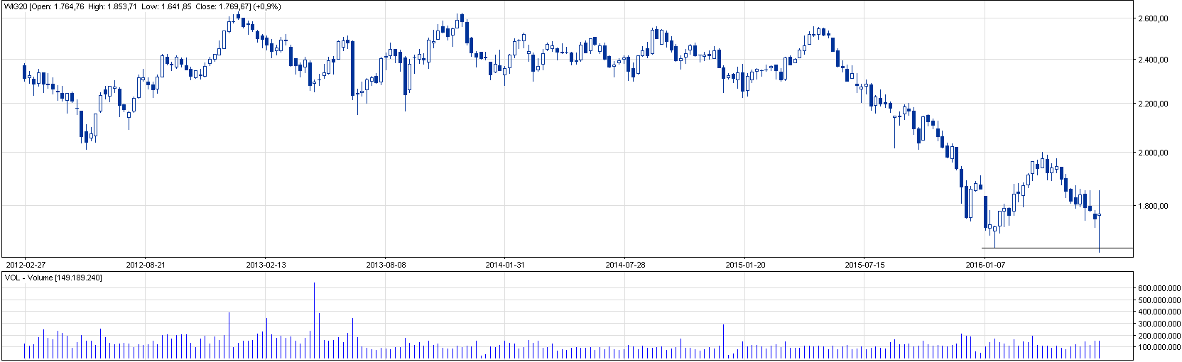 Pogrom po referendum w Wielkiej Brytanii finalnie nie był aż tak straszny, jak się z początku mogło wydawać. Początkowa mieszanka paniki oraz pękające jak bańka mydlana zlecenia obronne zepchnęły walory WIG20 na dwucyfrowy minus, jednakże byki były w stanie wykorzystać sytuację i zaczęły kontratak .W trakcie sesji widoczna była walka o wzrost, która w mojej ocenie wyglądała zachęcająco. Na koniec dnia mamy dużą białą świecę z dolnym knotem, a zatem atak byków można uznać za udany. WIG20 na wykresie tygodniowym wygląda mocno niezdecydowanie, ale zauważalna jest obrona styczniowego minimum:
