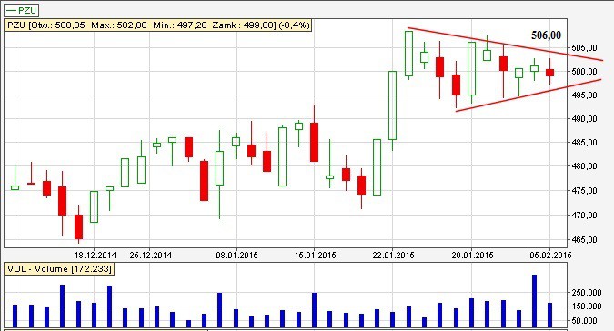 Tutaj natomiast tworzy nam się trójkąt symetryczny. Zagrywamy pod przebicie 506,00 zł. Była to również jedna z naszych spółek fundamentalnych. Do tego trend wzrostowy.