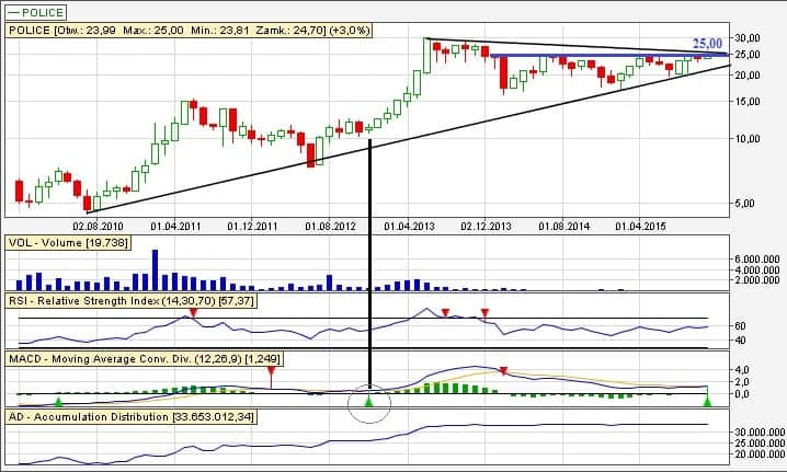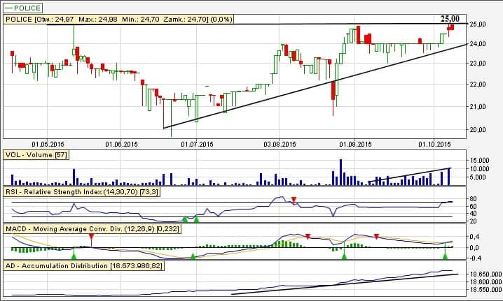 Już na miesięcznym był widoczny mocny opór na poziomie 25,00 zł. Nie mogł on zostać przebity kilkukrotnie. Na dziennym również wyraźnie to widać. Zagrywamy więc na przebicie 25,00 zł.