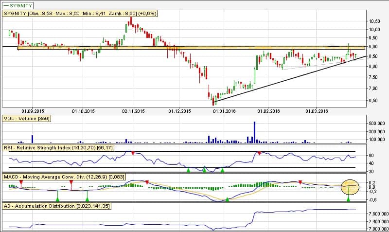 Sygnity dalej się znajduje przed oporem 8,80 – 9,00.