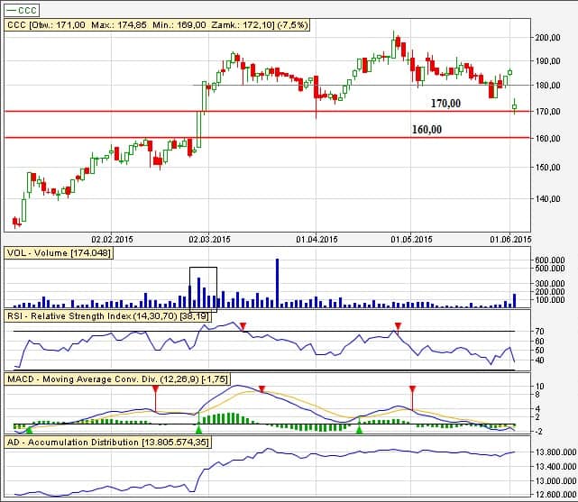 CCC w końcu ładnie się wybiło ze 180,00 zł.