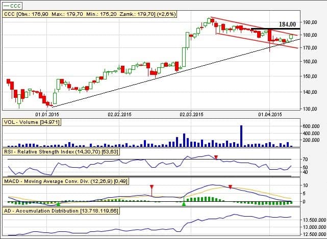 CCC się wybiło nad 180zł lecz bez szału wolumen.
