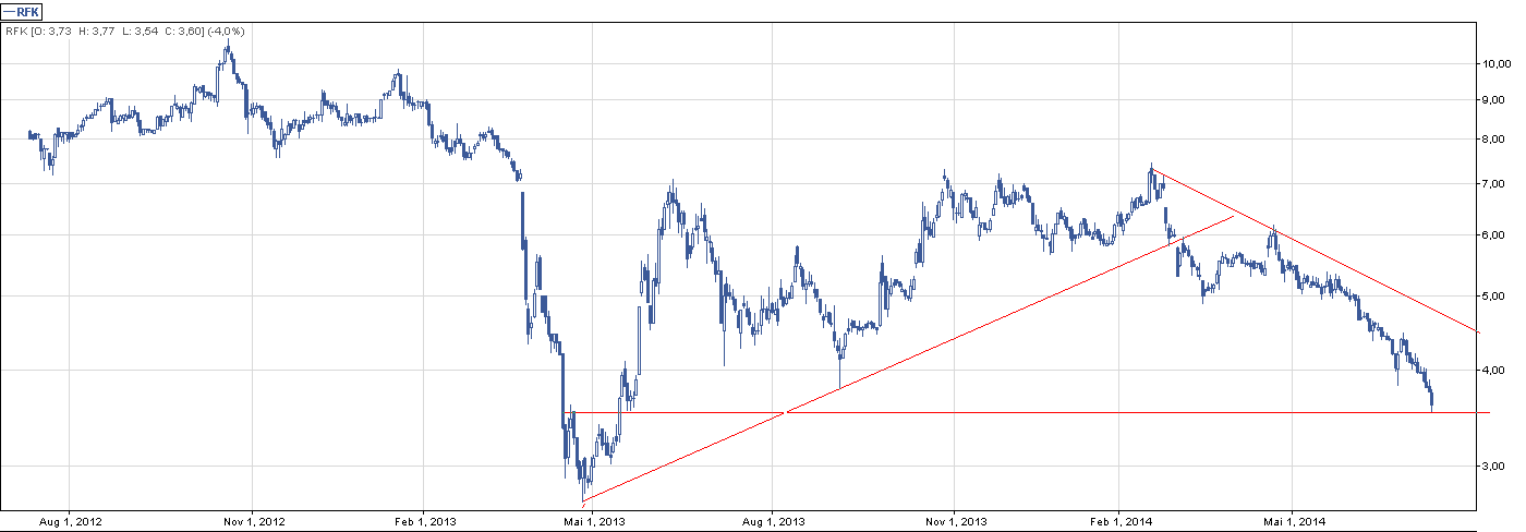 Wokół Rafako dużo działo się w zeszłym roku, gdzie rozbieżność cenowa była bodajże 200% w trochę ponad miesiąc. Obecnie spółka jest w bardzo mocnym trendzie spadkowym.