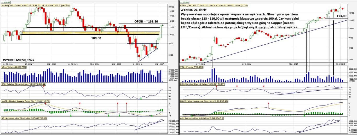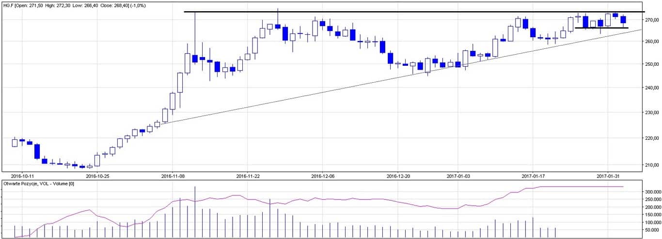 2. Analiza miedzi (przedstawiam tworzący się trójkąt zwyżkujący, którego przebicie będzie kluczowe dla dalszych wzrostów na KGHM):