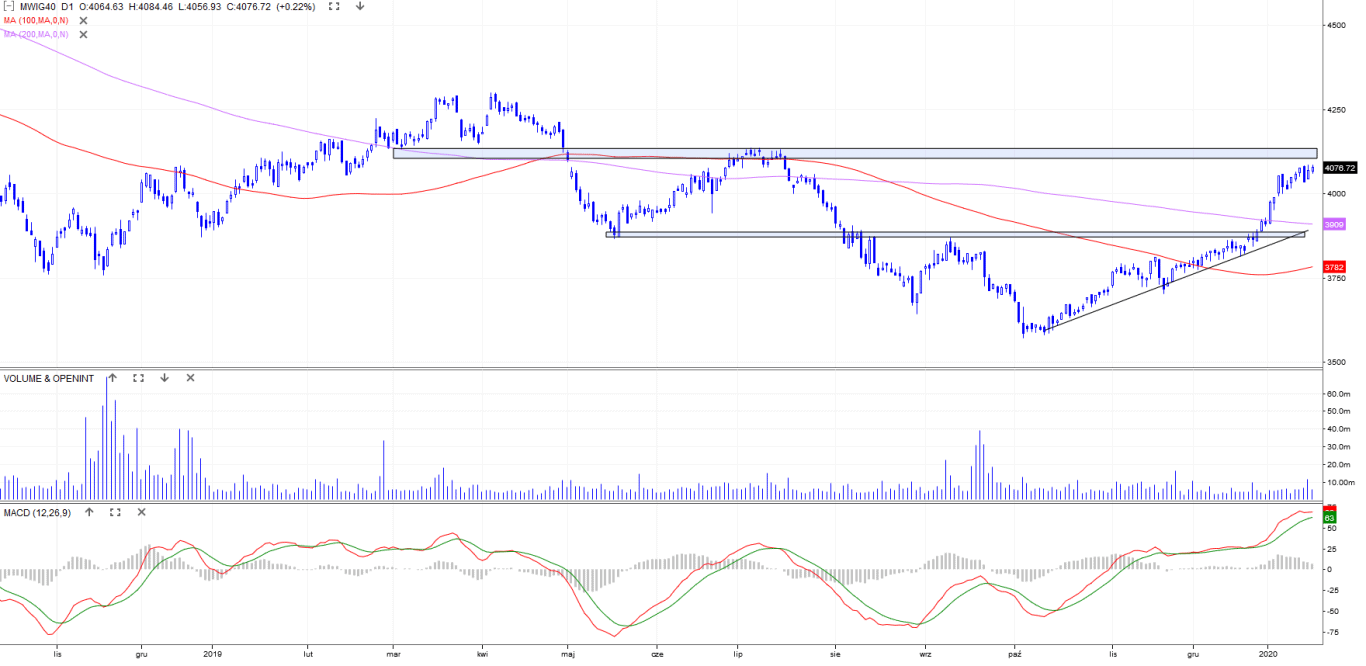 Indeks powoli dociera do wskazanego oporu…