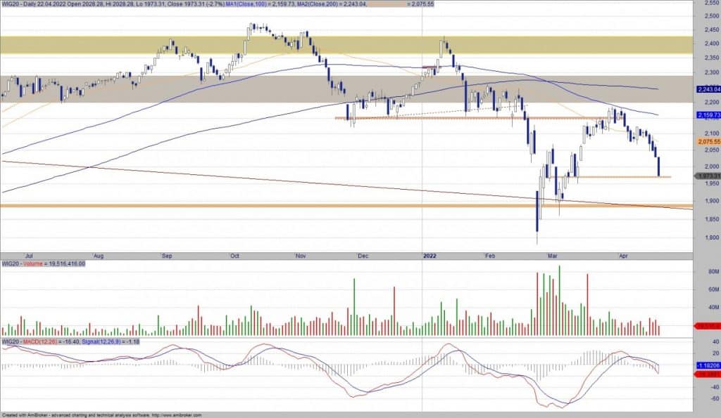 Spadkowy scenariusz spełnia się z nawiązką. Kurs zszedł do kolejnego wsparcia na 1970 pkt (bariera z okresu styczeń-kwiecień 2021). Jeżeli i tu byki nie zechcą podjąć walki, spodziewam się kontynuacji zejścia do…