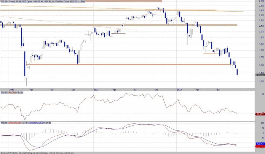 Tendencja spadkowa podtrzymana. Indeks powinien zmierzać do dołka z marca 2020 r (1300 EOD, intraday 1250). Przy 1250 pkt znajduje się silne wsparcie, przy którym rynek powinien reagować. W tym miejscu zamierzam zająć…