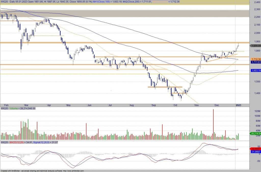Indeks zgodnie z prognozą kontynuował ruch wzrostowy i dotarł na czwartkowej sesji do okolic ważnego oporu na 1900 pkt., gdzie pojawia się podażowa świeca. W tym miejscu normalnym jest zagranie shorta z obroną na lokalnym…