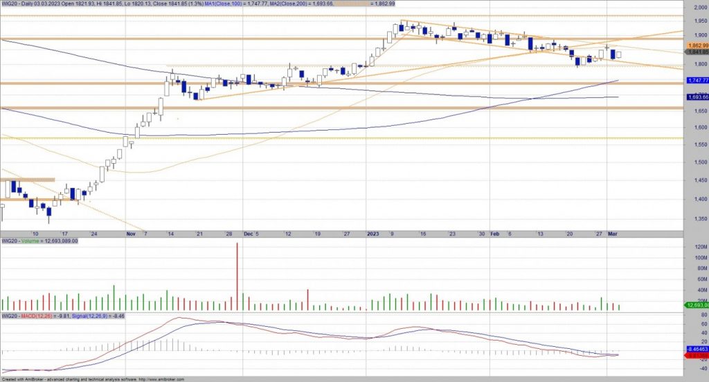 WIG20 broni się na wsparciu, w okolicy którego realizowałem paczkę shortów. Na razie sytuacja pozostaje neutralna. Nadal możliwy jest atak na niższe wsparcie przy 1750, gdzie docelowo zamierzam zamienić shorty na longi. Zamknięcie…