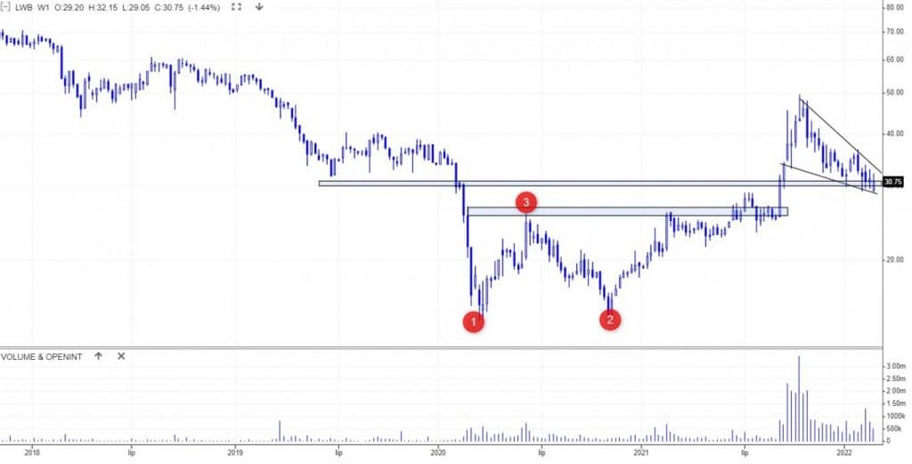 Dzisiaj na tapet wrzucam dwie spółki, które nakreśliły na wykresie formację klina zniżkującego. Mowa o spółce z sWIG80 oraz indeksu NewConnect.
